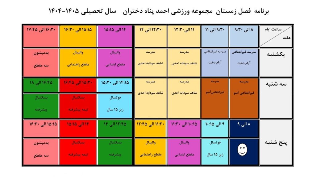 سالن ورزشی احمدپناه دختران زیرمجموعه اداره آموزش و پرورش ناحیه یک سنندج می باشد. برنامه کلاس های مجتمع+ ثبت نام کلاس های مجتمع+ رزرو مجتمع ورزشی پژوهش دختران "(ضروری)" زمینه های مورد نیاز را نشان می دهد 1مشخصات فردی2انتخاب کلاس3طول دوره4خلاصه ثبت نام Nameاین زمینه برای اعتبار سنجی است و باید بدون تغییر باقی بماند .نام و نام خانوادگی(ضروری)نام پدر(ضروری)شماره تلفن همراه(ضروری)شماره در دسترس برای تماس های ضروریشماره تلفن دوم(ضروری)شماره در دسترس برای تماس های ضروریکدملی(ضروری)تاریخ تولد (روز)(ضروری)ماه(ضروری)سال(ضروری)مقطع تحصیلی(ضروری)کودکستان (پیش دبستانی)ابتداییمتوسطه اولمتوسطه دومپایه تحصیلی(ضروری)پیش دبستاناولدومسومچهارمپنجمششمهفتمهشتمنهمدهمیازدهمدوازدهمآموزشگاه محل تحصیل(ضروری)رشته ورزشی(ضروری)نشانی(ضروری) . توافق نامه(ضروری) رضایت نامه و گواهی صحت طبق متن توافق نامه زیر مورد تایید است.«رضایت نامه ولی» احتراماً بدینوسیله رضایت کامل خود را اعلام میدارم که فرزندم در فعالیت های ورزشی مورد نظر که برابر با ضوابط و مقررات عملیات ورزشی است ثبت نام نموده و تعهد می نمایم، فرزندم کلیه ضوابط و مقررات سالن ورزشی که متناسب با عملیات ورزشی است را رعایت نماید و رفتارش مخالف با موازین شرعی مورد اشاره در ماده 158 قانون و مجازات اسلامی نباشد. این رضایت نامه بدون اجبار و در کمال صحت و سلامت در سامانه اینترنتی و همچنین با حضور در دفتر مجتمع آموزشی ورزشی مورد تأیید و امضاء قرار گردید. «گواهی صحت و سلامت دانش آموز» احتراماً بدینوسیله اعلام میدارم، فرزندم از سلامتی کامل جسمانی برای انجام تمرینات ورزشی برخوردار می باشد. لذا کلیه مسئولیت های ناشی از بروز حوادث غیرمترقبه در حین تمرین را که «حادثه ورزشی» تلقی می گردد و منطبق با شرایط رشته ورزشی و آئین نامه ها باشد شخصاً به عهده خواهم گرفت. لازم به ذکر است هرگونه کتمان بیماری و آسیب دیدگی قبلی که بعدها علت حادثه، نتیجه این کتمان باشد بر عهده اینجانب می باشد. موارد فوق در سامانه اینترنتی و همچنین با حضور در دفتر مجتمع آموزشی ورزشی مورد تأیید و امضاء قرار گردید. بدون عنوان(ضروری) بسکتبال شنبه و دوشنبه 15:15 تا16:30 والیبال 1 دوشنبه 16:30 تا 17:45 چهارشنبه 15:15 تا 16:30 والیبال 2 شنبه و چهارشنبه 16:30 تا 17:45 ژیمناستیک 1 روزهای زوج 15:15 تا 16:30 ژیمناستیک 2 روزهای زوج 16:30 تا 17:45 تکواندو روزهای زوج 15:15 تا 16:30 کاراته روزهای زوج 16:30 تا 17:45 طول دوره(ضروری) دو ماهه سه ماهه مبلغ قابل پرداخت قیمت: $0.00 تایید اطلاعات {all_fields}